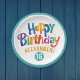 These colourful Birthday Paper Plates feature a playful design with vibrant, watercolor-style painted script on a white background, framed by a bold red border. Each letter is uniquely coloured, with lively splatters adding a fun touch. Perfect for surprise parties for teens, adults, or kids, these plates add a burst of colour to any celebration. You can even personalise them with the birthday person's name and age to make the plate extra special! They bring an artsy, customised touch to any surprise-themed event.