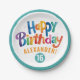 Cool Colourful Birthday Party Teal Brush Typo Paper Plate