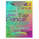 Colourful dance themed clipboard. This design has popular dance types printed over the face of the clipboard. Personalise by adding your name to the front and change or remove text on the back.