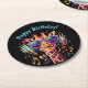 Cool Colourful Party Giraffe with Headphones Round Paper Coaster