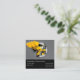 This cool construction business card template is presented on our square business card stock and designed with a the coolest graphic of a piece of construction equipment bursting out of a metal background and simple text layout you can customise online.