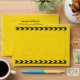 Cool custom construction excavator birthday party envelope for a child who loves yellow construction vehicles in black and yellow. Fun vehicle design for a little boy who loves cars and trucks. Customise with your kid's return address on the back. The front has two lines of black and yellow caution tape.