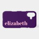 This dark purple phone case is budget friendly. You can edit the light pink text to show the correct name or monogram.