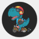 Cool dinosaur riding a motorcycle classic round sticker