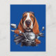 Cool dog biker, cute basset hound dog driver postcard