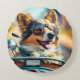 Cool dog biker, cute driving dog round pillow