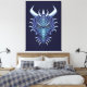 This striking dragon artwork features a digital illustration of a powerful magical creature’s head, detailed with bold horns and glowing accents in rich purple and blue hues. Set against a deep dark blue background, this fantasy-inspired piece is perfect for lovers of dragons, magic, and mythical worlds. A bold and mystical addition to any fantasy art collection.
