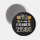 Cute little brown pumpkin, mushroom, and rainboots illustrations and the big text: Fall is my favourite season.