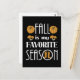 Cute little brown pumpkin, mushroom, and rainboots illustrations and the big text: Fall is my favourite season.