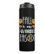 Cute little brown pumpkin, mushroom, and rainboots illustrations and the big text: Fall is my favourite season.