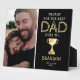 Cool father's day plaque featuring the saying "trophy for the best dad goes to...", the dads name, a gold trophy, and the childrens names. A cute gift for a father or stepdad on their birthday or for fathers day!