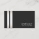 Luxurous, elegant design featuring three horizontal silver foil stripes on off black background. NOTE: This is not real gold leaf - but an image. There is no shine or texture. A versatile business card for creative professionals and entrepreneurs. This stylish business card is also great for beauty salons, cosmetologists, estheticians, boutiques, jewellery designers, hair and fashion stylists, event planners or any other image aware professionals.