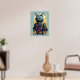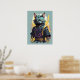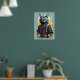 Cool Fire Splash Grey Ninja Cat Warrior Poster