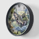 I received this as a birthday gift from my husband to replace a clock that had broken. It was perfect, pictures of my sweet family to see at every hour of the day. The size of the pictures looks nice for the size of the clock and I love looking at it! The only downside is there is no cover for the battery on the back, which makes me nervous having little kids running around the house, but an easy fix with some tape. The printing turned out clear, considering they were all cell phone pictures. Some of them look slightly grainy upon getting close up. But so nice overall!