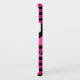 Vibrant pink and black stripes with cool flamingo silhouette design on monogrammed case.