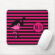 Cool Flamingo Black and Pink Stripes Monogram Mouse Mat