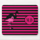 Vibrant pink and black stripes with cool flamingo silhouette design on monogrammed mouse pad.