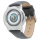 Blue Eye Iris © Sunny Mars Designs. Cool, fun custom printed blue eyeball wrist watch with a trendy, modern, beautiful, unique, freaky, creepy, weird and twisted graphic illustration of a striking big blue realistic eyeball iris of an eye. Other colour eyeball designs are also available in store.