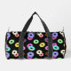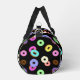 Cool and fun colourful doughnuts pattern black bag Fashion Accessories. Pattern made from illustrations of many delicious pastry doughnuts with all kinds of coloured glazing, chocolate, vanilla and all the colours, blue, yellow, pink, purple, cyan..
