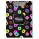 Cool fun colourful doughnuts pattern black Monogra Clipboard