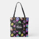 Cool fun colourful doughnuts pattern black Monogra Tote Bag