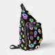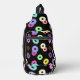 Cool and fun colourful doughnuts pattern black bag. Pattern made from illustrations of many delicious pastry doughnuts with all kinds of coloured glazing, chocolate, vanilla and all the colours, blue, yellow, pink, purple, cyan..