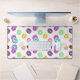 Cool and fun colourful doughnuts pattern Desk Mat. Personalise unique cool workspace for her office, room, work, workshop, gaming room.. Pattern made from illustrations of many delicious pastry doughnuts with all kinds of coloured glazing, chocolate, vanilla and all the colours, blue, yellow, pink, purple, cyan..
