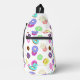 Cool and fun colourful doughnuts pattern bag. Pattern made from illustrations of many delicious pastry doughnuts with all kinds of coloured glazing, chocolate, vanilla and all the colours, blue, yellow, pink, purple, cyan..