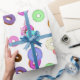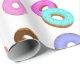 Cool and fun colourful doughnuts pattern Gift Wrapping Supplies Wrapping Paper. Pattern made from illustrations of many delicious pastry doughnuts with all kinds of coloured glazing, chocolate, vanilla and all the colours, blue, yellow, pink, purple, cyan..