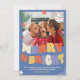 Spread holiday cheer with this "Merry & Bright" Christmas photo greeting card! Featuring a vibrant and festive design, this card showcases a playful, bold multi colour retro font on a blue background, making your holiday message stand out. The top right corner is adorned with a whimsical Christmas ornament and the year, adding a touch of seasonal charm. The card is fully customisable, allowing you to change all the colours to match your personal style or holiday theme. The photo section prominently displays a cherished family moment, surrounded by festive white accents like snowflakes and holiday foliage. The witty message at the bottom adds a lighthearted touch, ensuring your greeting brings smiles and joy. Perfect for sharing your warm wishes and special memories, this card combines fun, personalisation, and festive spirit in one delightful package.