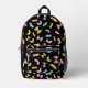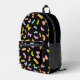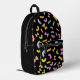 Cool fun pasta macaroni colourful pattern on black printed backpack