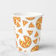Cool and fun pizza slices pattern Paper Cups for birthday pizza party. Juicy vector made pizza with crunchy crust, cheese, salami, champignon mushrooms, olives and a sprinkle of oregano.