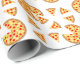 Cool and fun pizza slices pattern on white Wrapping Paper for birthday pizza party. Juicy vector made pizza with crunchy crust, cheese, salami, champignon mushrooms, olives and a sprinkle of oregano.