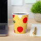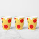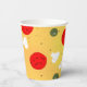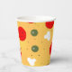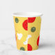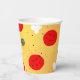 Pizza party Party Supplies Paper cups to celebrate kids birthday. Juicy vector made pizza with crunchy crust, cheese, salami, champignon mushrooms, olives and a sprinkle of oregano.