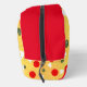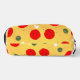 Cool fun pizza pepperoni mushroom bag. Juicy vector made pizza with crunchy crust, cheese, salami, champignon mushrooms, olives and a sprinkle of oregano.
