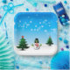Cool fun Snowman Sparkly Christmas Trees blue Paper Plate