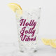 Cool Funny Stylish Modern Elegant Monogram Minimal Merry Christmas holly Jolly Vibes Glasses.