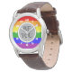The watch looks really great! Very sharp and well done. The leather band is really nice, though for a man's watch I think it should be longer. Unfortunately, it isn't big enough for my husband's wrist but I will get a replacement because he is very excited to wear it!