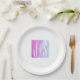 Cool Geometric Pink & Purple | Couples Initials Paper Plate