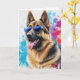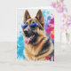 Blank greeting card of a German Shepherd in cool shades with a splash art background.