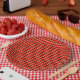 Cool Gingham Orange, Red and Black Pattern Design Paper Plate