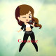Longhaired girl holding microphone and singing, wearing black pants and a crop top, to personalise