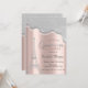 Elegant silver glitter Eiffel tower and silver glitter drips on a rose gold background.