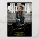 Cool photo brushstroke, Modern and simple Black and real gold foil graduate script open house photo graduation. Add 4 of your favourite photos with an a modern and abstract brushstroke style font and photo grid collage.