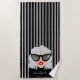This Beach Towel features a woman with grey hair, dark pink lips, and sleek black cat-eye glasses. The design is striking and modern, with a minimalist feel that is perfect for any stylish individual.