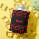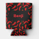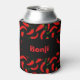 Fun can cooler printed with big red chilli peppers, on a sleek black background. The front of the can cooler hosts an area for you to enter a name. Just click Customise to change the name to your own.