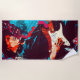 The fabric is soft and fluffy, feels great on the skin. The quality seems to be very good, I have not yet tested how absorbent the fabric is. The colors were vivid, the lines of the design clear, all in all, a great result.