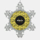 Cool Happy Smiling face pattern yellow Monogram Snowflake Pewter Christmas Ornament