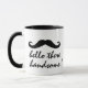 Morning Hello there Handsome message mug gift for boyfriend husband partner friend and more. Easily customisable for wife, girlfriend or other significant other. "Hello there, handsome" print funny coffee mug design for your loved ones, new young graduate, smarty pants for birthdays, Christmas and other occasions or for everyday coffee drinking use..
