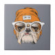 This design features a bulldog portrait in a hipster hat and with glasses.